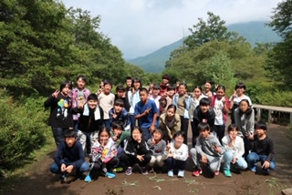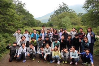 ウォークラリーゴール!男体山を背景に記念撮影です!