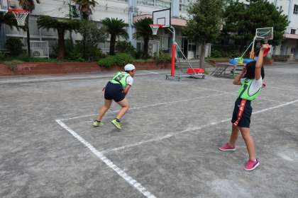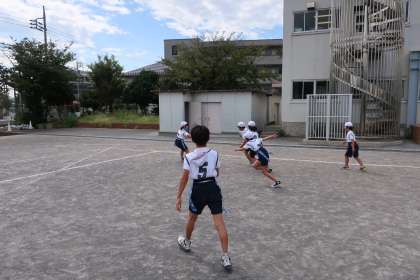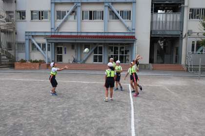 4年生が体育の時間、タグラグビーを行っています。ラグビーワールドカップが盛り上がっているところ、子供たちのラグビーに対する関心も高まっています。タグラグビーは、タックルをしないでタグを取るので安全なスポーツです。