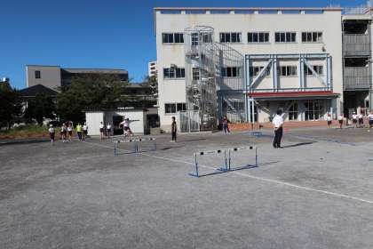 さわやかな秋晴れの下、体育大会の朝練習を行いました。一週間後にせまった体育大会に向けて、自分の記録を高めようと努力しています。
