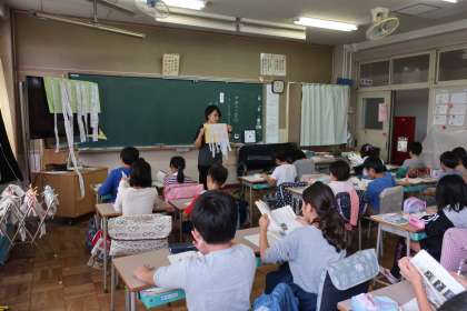 4年2組の国語の学習では、海がめの命を守る説明文を読んでいます。4年生になると、筆者の意図を捉えて、要旨をまとめていきます。叙述に即して自分の考えを導く難しい学習に向き合っています。