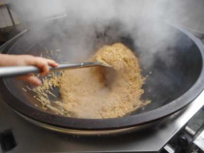 カレーライスは、玉ねぎをよく炒め、じっくり煮込んで作りました。