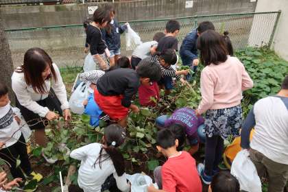 2年生もさつまいも掘りを行いました。土を掘ってさつまいもが出てきた時は、みんな大喜びです。水できれいに洗って、ピカピカのさつまいもになりました!