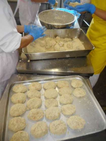 里芋コロッケは、里芋とじゃが芋を混ぜて作りました。