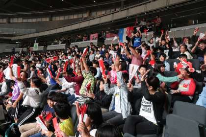 車いすラグビーワールドチャレンジ2019が東京体育館で行われています。本校の5、6年生が、ブラジル対フランスの試合に招待されました。初めて見る、車いすラグビーの迫力、DJのパフォーマンスと音楽によって、まさにライブの盛り上がり!ハリセン応援グッズで場内は大盛り上がりです!選手たちも応援に力を得て、素晴らしい戦いを見せてくれました。これぞスポーツの面白さ!みんな、大満足で学校に帰って来ました!