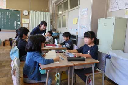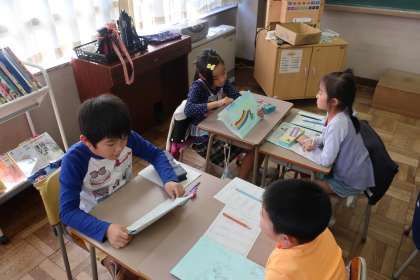 2年生の国語の学習で、絵を見ながらお話を作っています。お話づくりはみんな大好きです。お友達の作ったお話を聞いて、面白かったことやよかったことを伝えました。みんな、どんなお話ができたのか、楽しく話して聞くことができました。