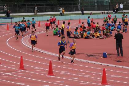 6年生が江戸川陸上競技場で体育大会に出場しました。5つの種目にそれぞれエントリーして、これまでの練習の成果を発揮します。オープニングは、1000mです。400mトラック2周半です。自分のペースを保って走ります。続いて100m走です。スタートダッシュをきかせて真っ直ぐゴールに向かって走りました。