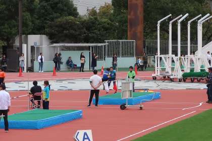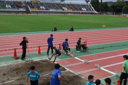 走り高跳びと走り幅跳びはフィールドの中で行われます。スタンドから大きな声で声援を送り、その声援にこたえるような見事な跳躍が見られました。