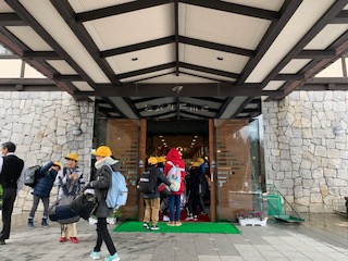 江戸川塩沢荘に着きました。雪が積もっていて、みんな大喜びです!