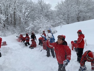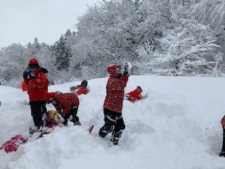 ものすごい積雪です!子供たちは、初めての大雪に大満足!雪合戦の始まりです!
