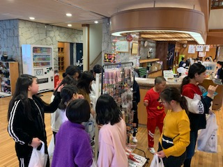 2日目ですが、おみやげを買いました。お家の人を思い浮かべて楽しく買う子供たちです!