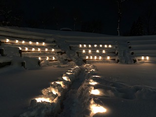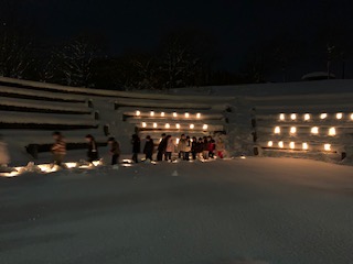 室内レクの後は、楽しかったウインタースクールの思い出に、雪とうろうのプレゼントです。幻想的な光にみんなから、きれいー!の声が聞こえてきました。