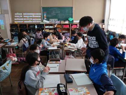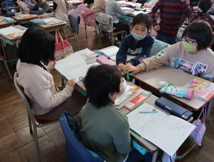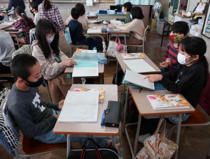 新スポーツを何にするのか、グループで話し合っています。誰に、どんな目的で行うのか考えながら、新しいスポーツのアイディアがたくさん出てきています。
