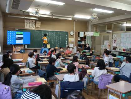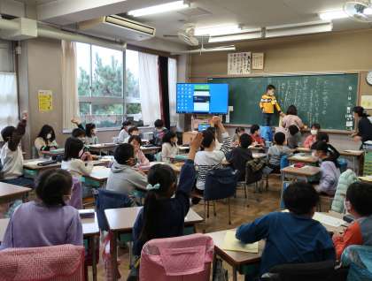 学級会では、クラスで取り組みたいことを話し合っています。今日は、お楽しみ会の計画です。どんなお楽しみ会にしたいのか、活発に意見を述べています。司会と記録の役割の人は、会を円滑に進めることができるように取り組んでいます。