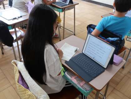 江戸川区で生産されている小松菜は、全国へ集荷されています。農家で作られた小松菜はどこへ運ばれていくのでしょうか。そして、私たちが食べている小松菜はどこから来るのでしょうか。タブレットを活用して調べたり、友達と話し合ったして予想を確かめています。