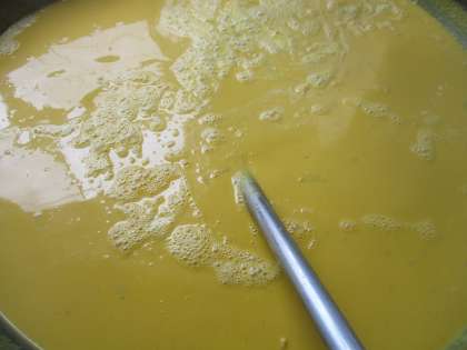南瓜のポタージュは、玉葱・いんげん豆・米・南瓜などをじっくり煮込んで、ミキサーにかけて、スープにしました。