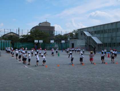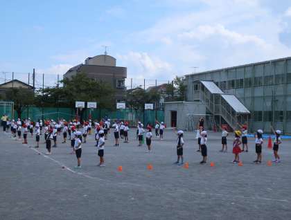 1年生は嵐の「ハピネス」にノリノリのダンスです。みんなの手と足の動きが素敵です!