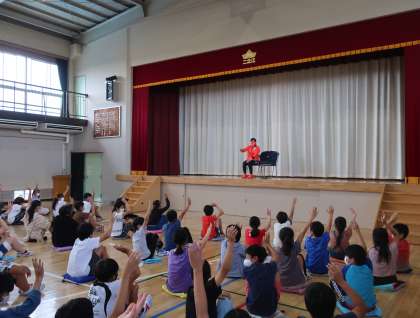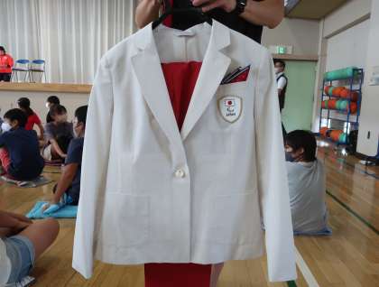 パラリンピックに出場した辻内彩野選手が来校してくれました。本来であれば、全校児童が集まって、辻内選手と触れ合いたかったのですが、今はできません。そこで、6年生に限って体育館で、パラリンピックの報告を聞く会にしました。パラリンピックの様子だけでなく、選手村の食事の話など、興味深い内容盛りだくさんでした。質問コーナーでは、「プレッシャーに負けない秘訣は?」など、6年生らしい質問がたくさん出ました。