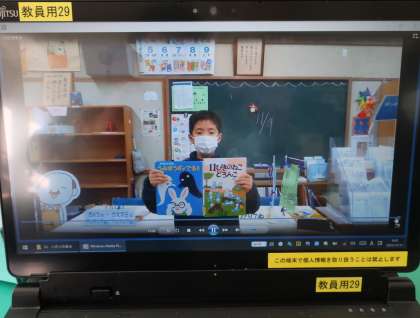 今日から委員会発表が始まりました。どの委員会もリモート形式で行います。今日は、環境委員会と図書委員会です。環境委員会からは、委員会としての活動の様子を伝え、クイズを出していました。図書委員会は、2冊の本を読み聞かせしてくれました。