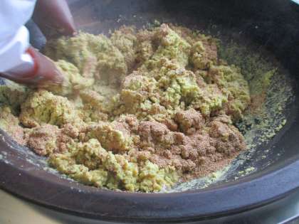 さつま芋ごま団子は、さつま芋のほかに、細かく刻んだ栗も入っています。