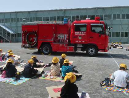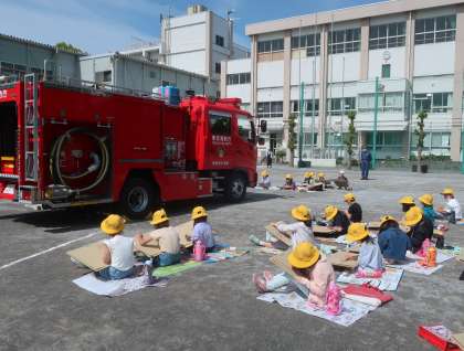 天気予報を見ると心配していましたが、晴天の中、消防写生会が行われました。大きな消防車が校庭へ到着すると、子供たちから歓声が上がりました。消防車をしっかりと見て、画用紙に大きくかきました。消防署の皆様、お忙しい中、ありがとうございました。