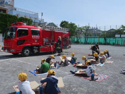 天気予報を見ると心配していましたが、晴天の中、消防写生会が行われました。大きな消防車が校庭へ到着すると、子供たちから歓声が上がりました。消防車をしっかりと見て、画用紙に大きくかきました。消防署の皆様、お忙しい中、ありがとうございました。