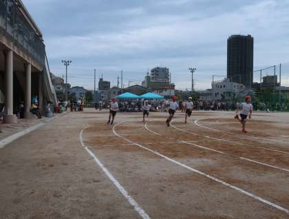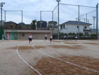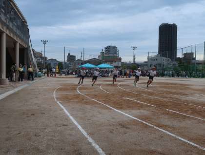 競技最初は、3年生の80m走です。3年生は、初めてのカーブを走ります。カーブでスピードをゆるめず、ゴールまで力強くかけぬけました。