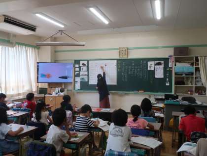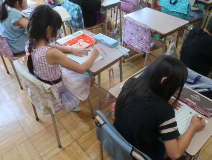 物語を読む時、登場人物の心情を想像することが大切です。その心情がどのように変化したのかを考えることで物語の内容を理解していきます。心情がどのように変化したのか、心情グラフに書き込んで考えています。見えない心を見せる学習です。