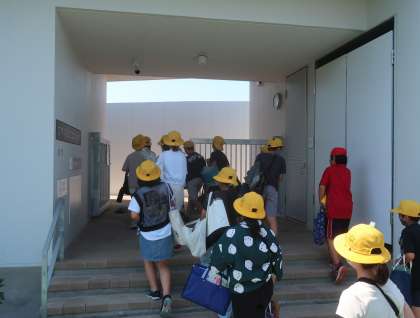 今日から、子供たちのよる引越しが始まりました。教室の荷物や、自分のボックスなどを新校舎へ持って行く引越し体験です。みんなで、荷物を運び新校舎へ着きました。初めて入る新校舎に・・・!