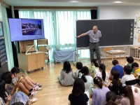1年生は生活科の学習でたこあげをしました。たこに自分で好きな絵を描き、オリジナルのたこを作りました。