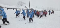 明日のスキーのために、スキー板に慣れる練習をしました。雪の降るなか、頑張っていま...