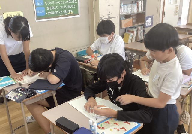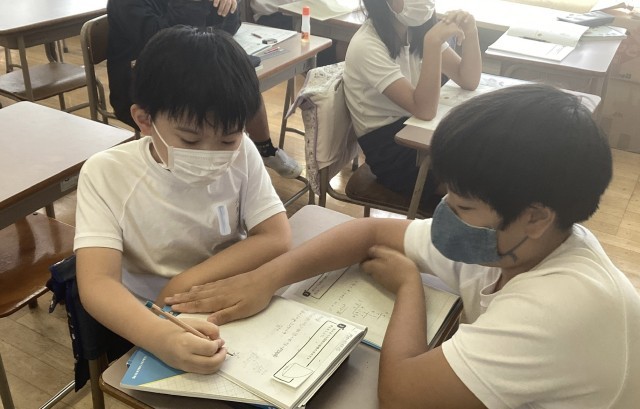 友達同士で解き方を教え合いながら、小数の計算に気を付けて答えを求めることができました。