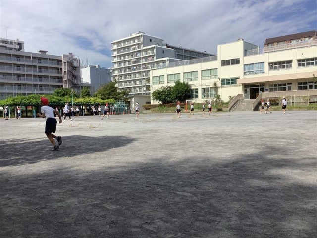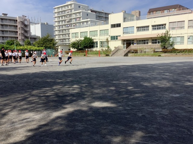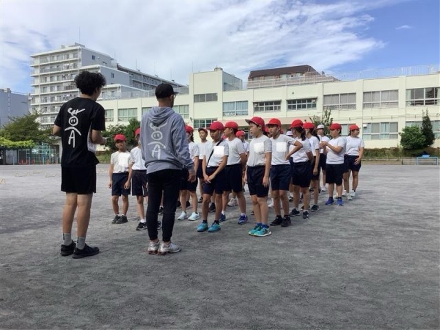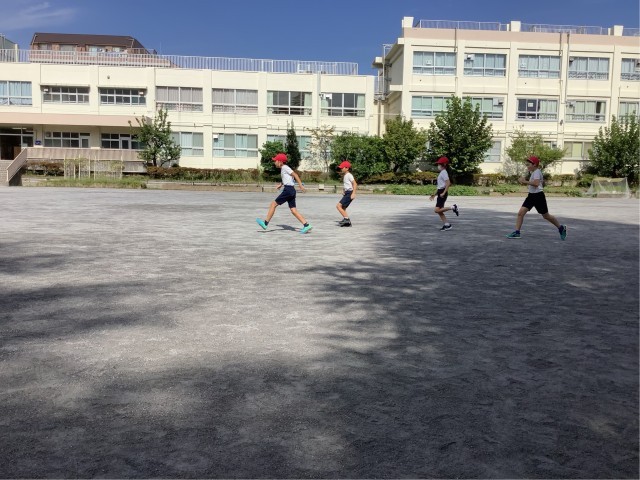 6年生は、体育大会に向けて大きくスキップしたり高くジャンプしてから走ったりする練習を教えてもらいました。