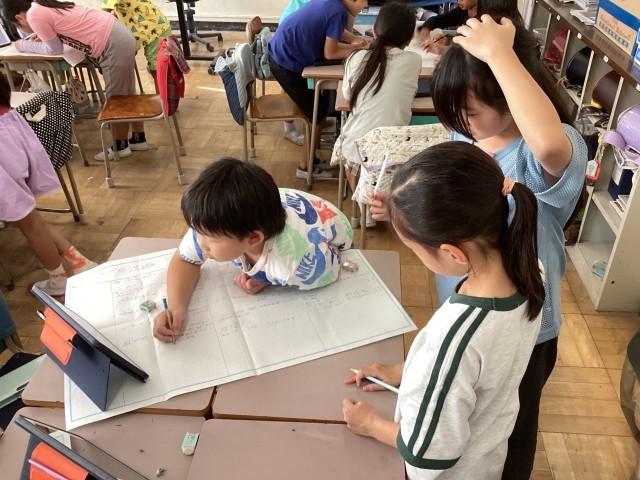 3観点で、グループごとにまとめ 発表しました。新聞は廊下に掲示しています。