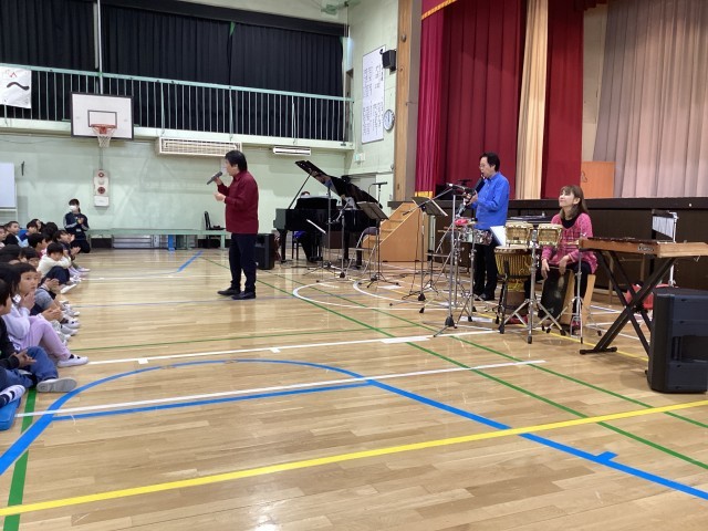 ピコリ楽団の皆さんが来てくださり、リコーダーや鍵盤ハーモニカなど児童が使う楽器を使って演奏してくださいました。