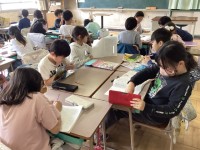 完成したかるたで楽しそうに言葉に親しむ様子が見られました。