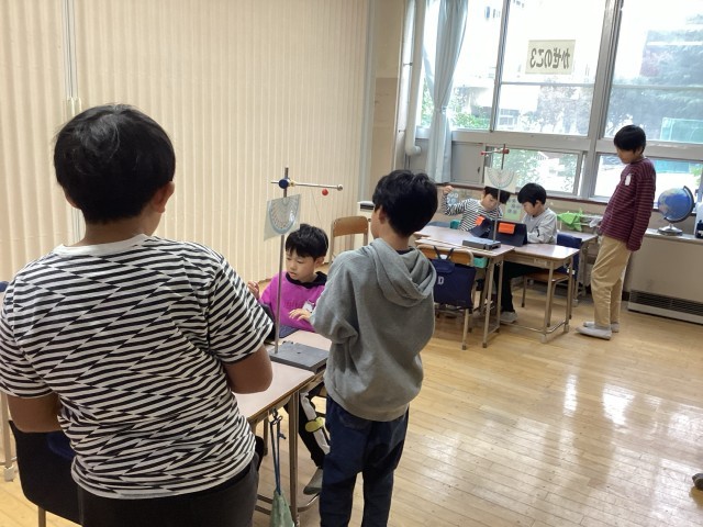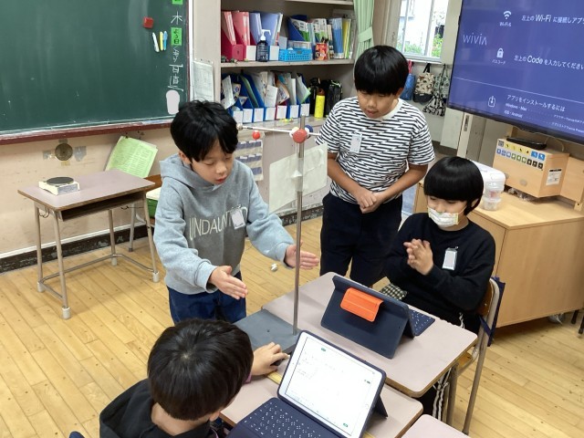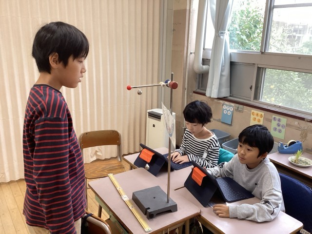 グループで声を掛け合って、一生懸命時間を測ったり、記録したりしました。予想とは違う結果になり、実験結果に驚いている子もいました。