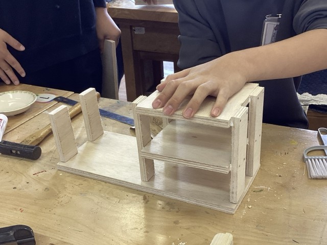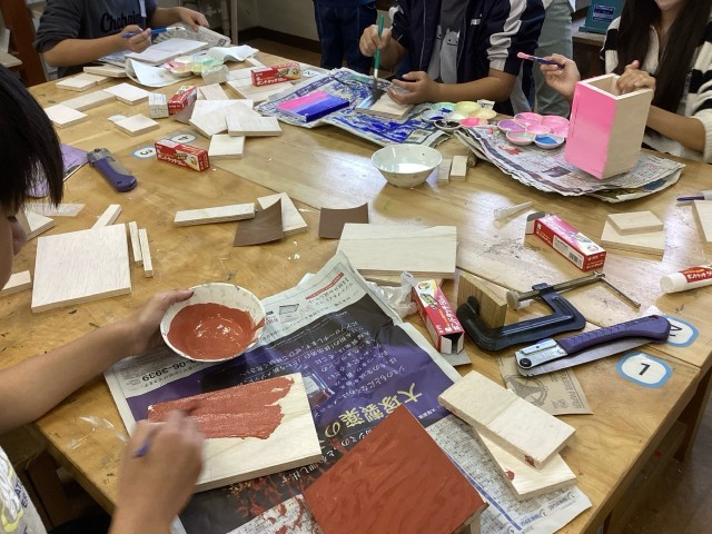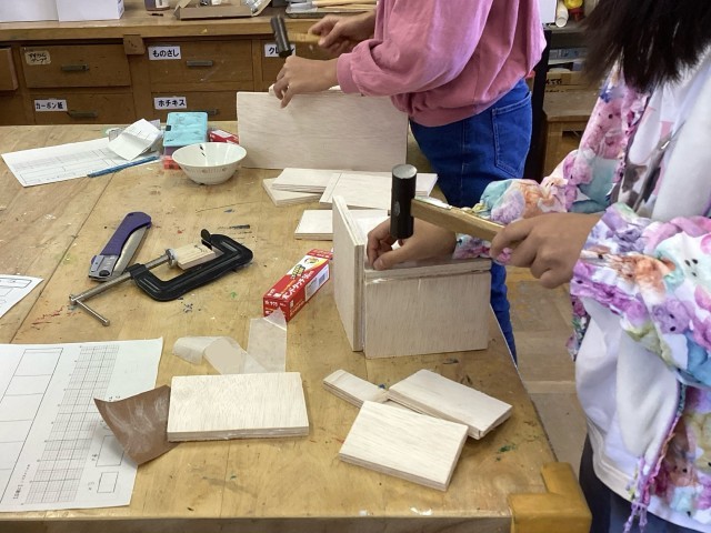 10月に描いた設計図を基に板を切り、塗装や組み立てをしています。