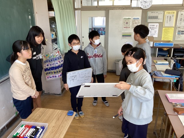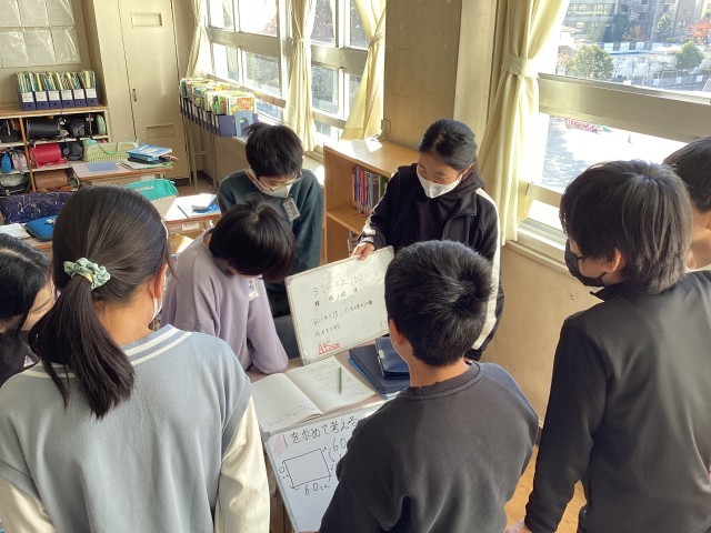 6年 算数「比」 公開日 2025/11/26 更新日 2025/11/27 お知らせ 6年生の算数では、美味しいミルクコーヒーの作り方を比を使って考えています。写真は班で話し合い、考えた方法を他の班に紹介している場面です。説明することで、より自分の考えが深まります。 いいね(0)