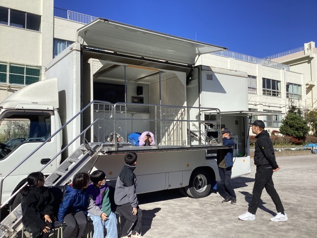 4年生は、地震発生時の行動を身につけることをねらいとして、起震車体験を行いました。