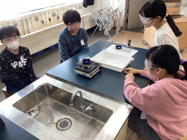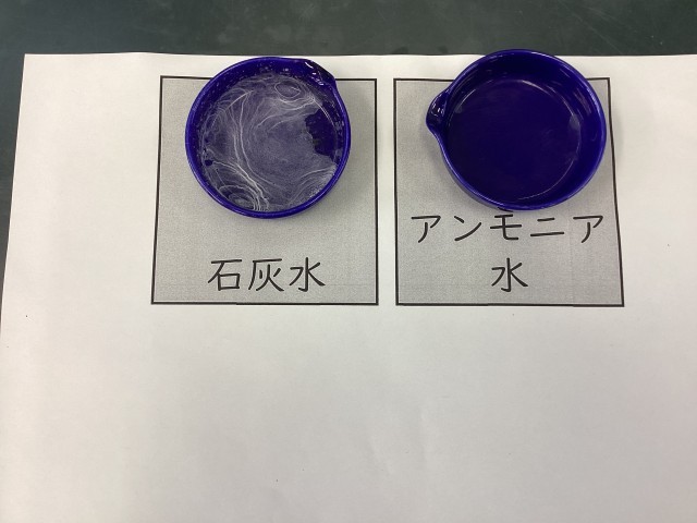 理科室でいろいろな水溶液の様子を調べています。今回は石灰水とアンモニア水について調べました。