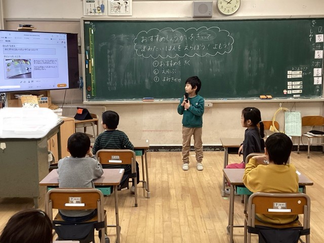 自分のおすすめした読み聞かせを見て喜んでいる1年生を見て、