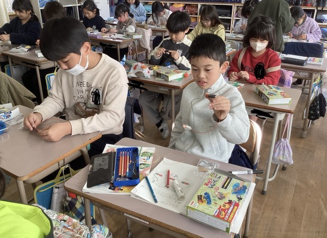 電池の向きを変えたら明かりはつかないと予想した子が多かったですが、結果はつくと知って驚いていました。