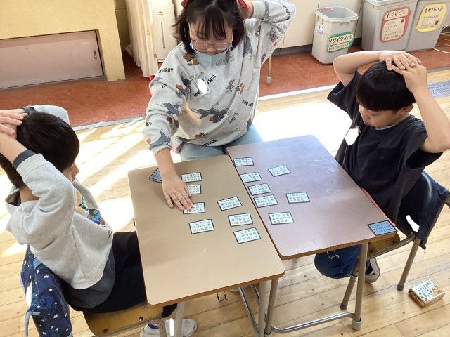 短歌の下の句を聞き取って札を取る、百人一首をしました。3年生は初めての百人一首で、「カルタと似ているけれど、途中の言葉(下の句)を聞き取って札を取るから面白い。」と、楽しく活動できました。4年生は以前やったことがあるので3年生に負けないように頑張っていました。みんなで楽しく短歌に触れました。