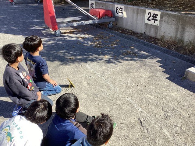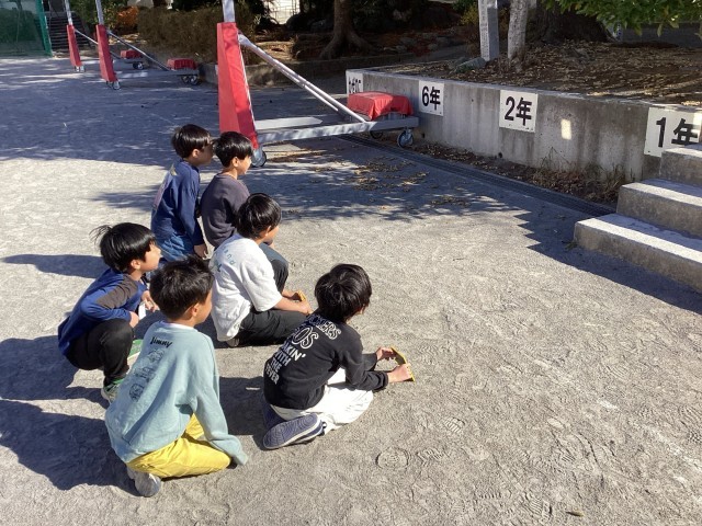 太陽の光を鏡に反射させてできた光を使ってまとあてゲームをしました。鏡を覗きこまない、反射した光を人に向けないといった約束をしっかり守って遊びました。遊びながら、「光が当たっているところが明るい」や「日陰では反射しない」など、良い気付きもありました。