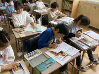 学級での図工の授業では、ボードゲーム作りに取り組んでいます。