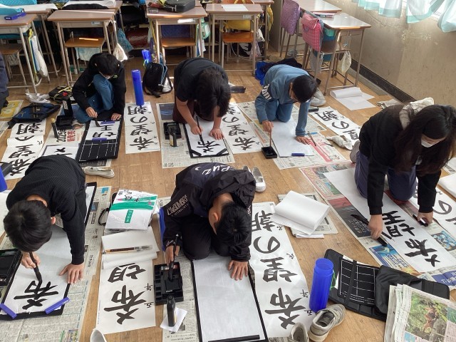 画のつながりや文字の大きさ・すき間などを意識しながら、集中して取り組んでいました。