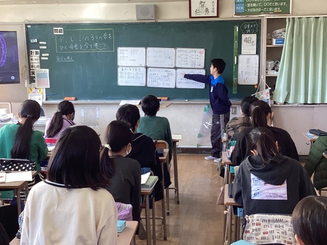 6年生では、算数「並べ方と組み合わせ」の授業を行いました。ドレミの3つの音を使って何種類のメロディーが作れるのかを考えました。