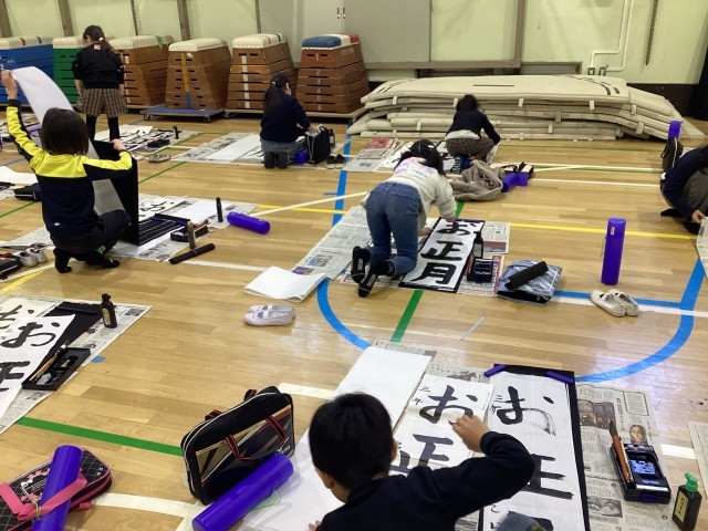 3年 「書き初め大会」 公開日 2026/01/14 更新日 2026/01/14 できごと 今年の書き初め大会で、3年生は初めて毛筆に挑戦しました。体育館での書き初めも未経験だったので、少し緊張している様子でした。一画ずつお手本を見ながら「お正月」と力強く書くことができました。 +1 いいね(0)