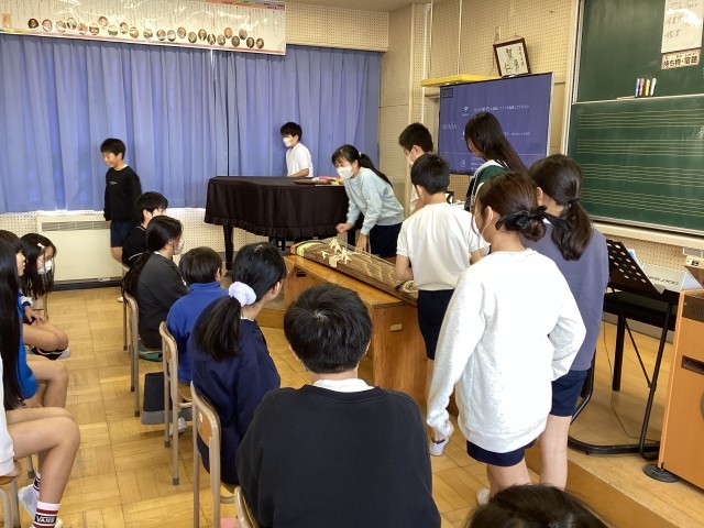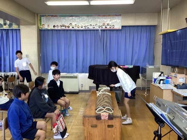 尺八と筝で演奏されることに気付き、学校にある筝を実際に鳴らしてみました。