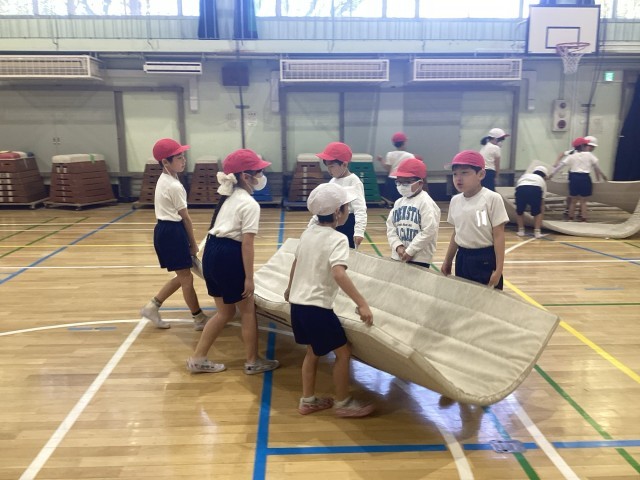 2年 体育科「マットを使った運動遊び」 公開日 2026/01/16 更新日 2026/01/16 できごと 2年生は体育館でマットを使った運動遊びに取り組んでいます。協力して重たいマットを運び、耳をしまって準備をします。今日はジグザグにマットを並べて、コースを作って丸太転がりや前回りを行いました。以前取り組んだ時よりも腕の力がついてきました。これから後ろ回りや側転にも挑戦していきます。 +1 いいね(0)